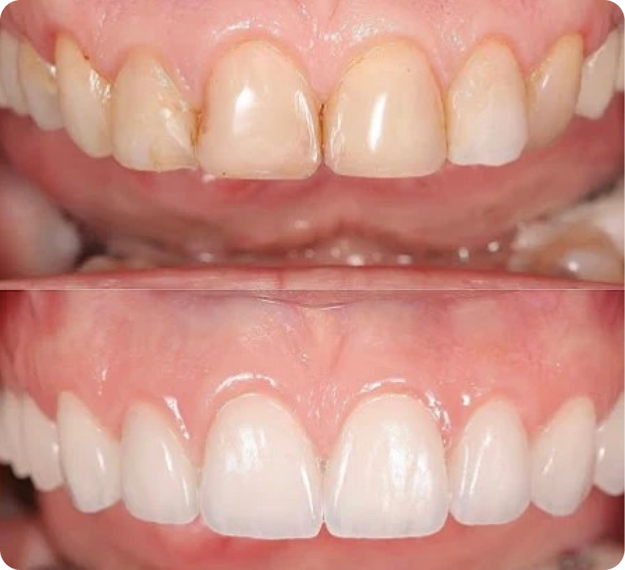 The focus is entirely on transforming smiles using custom-made porcelain or composite veneers.